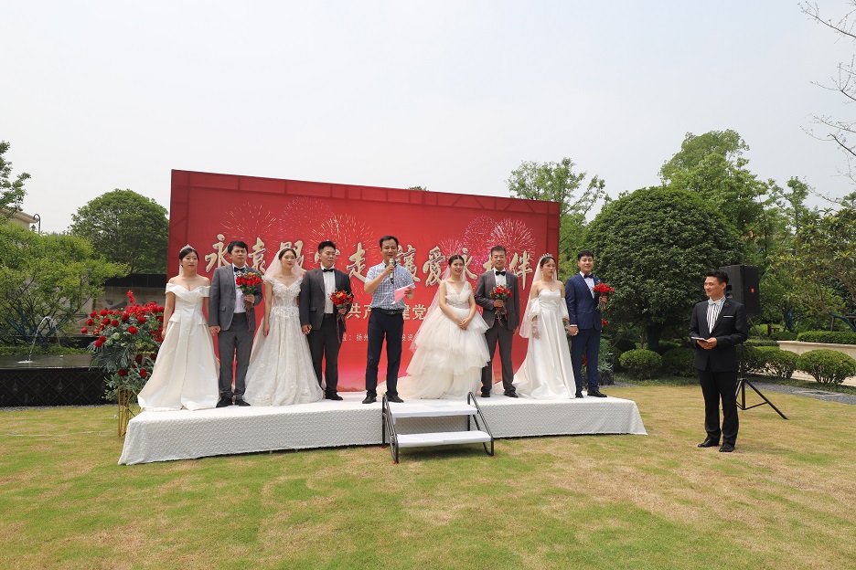 系列活動三:“永遠跟黨走 讓愛永相伴”集體婚禮 7月1日上午,在中國共產(chǎn)黨成立99周年的大喜日子,公司黨支部組織公司黨員干部職工為公司四對新人舉辦了一場別開生面的集體婚禮。 婚禮現(xiàn)場,公司黨支部副書記、總經(jīng)理趙建理受維揚發(fā)投黨支部、董事會的委托,代表維揚發(fā)投全體同仁為幾對新人送上最美好的祝愿的同時,也向幾位新人提了兩點希望: 一是希望幾對新人在今后的的生活中傳承良好家風(fēng),互敬互愛、和睦相處,孝敬雙方父母,做一個好丈夫、好妻子、好女婿、好兒媳。二是希望幾對新人在今后的工作中互相支持、互相鼓勵、積極工作,成為事業(yè)有為的好青年,為中國特色社會主義偉大事業(yè)不懈奮斗。 舉辦集體婚禮是新時代移風(fēng)易俗、婚事新辦的好形式,也是維揚發(fā)投始終堅持“文化塑企”的理念體現(xiàn),維揚發(fā)投將始終堅持“以人為本”,一以貫之關(guān)心職工、服務(wù)職工。